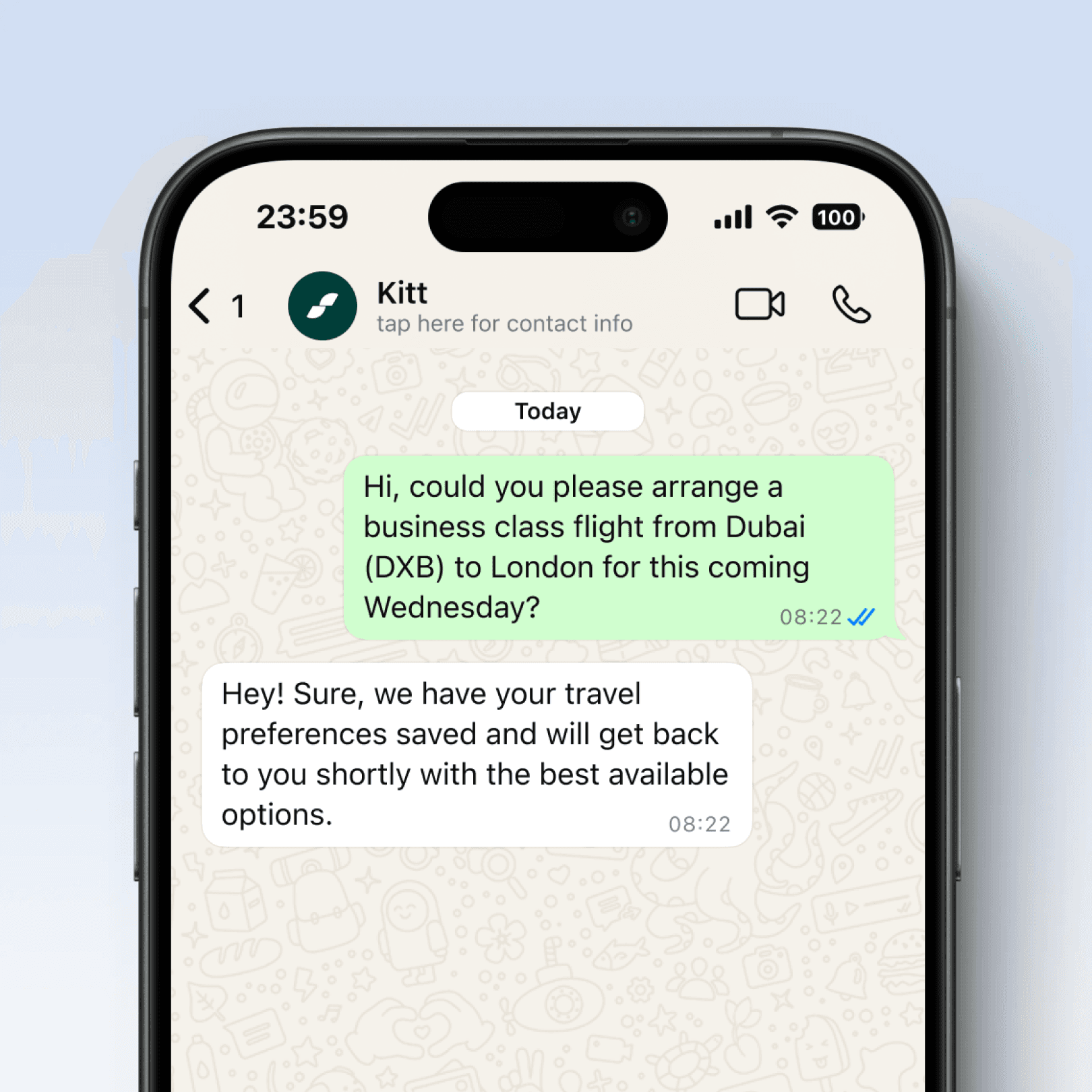 No portals, no apps, no forms. Just message your dedicated travel team and we handle everything.