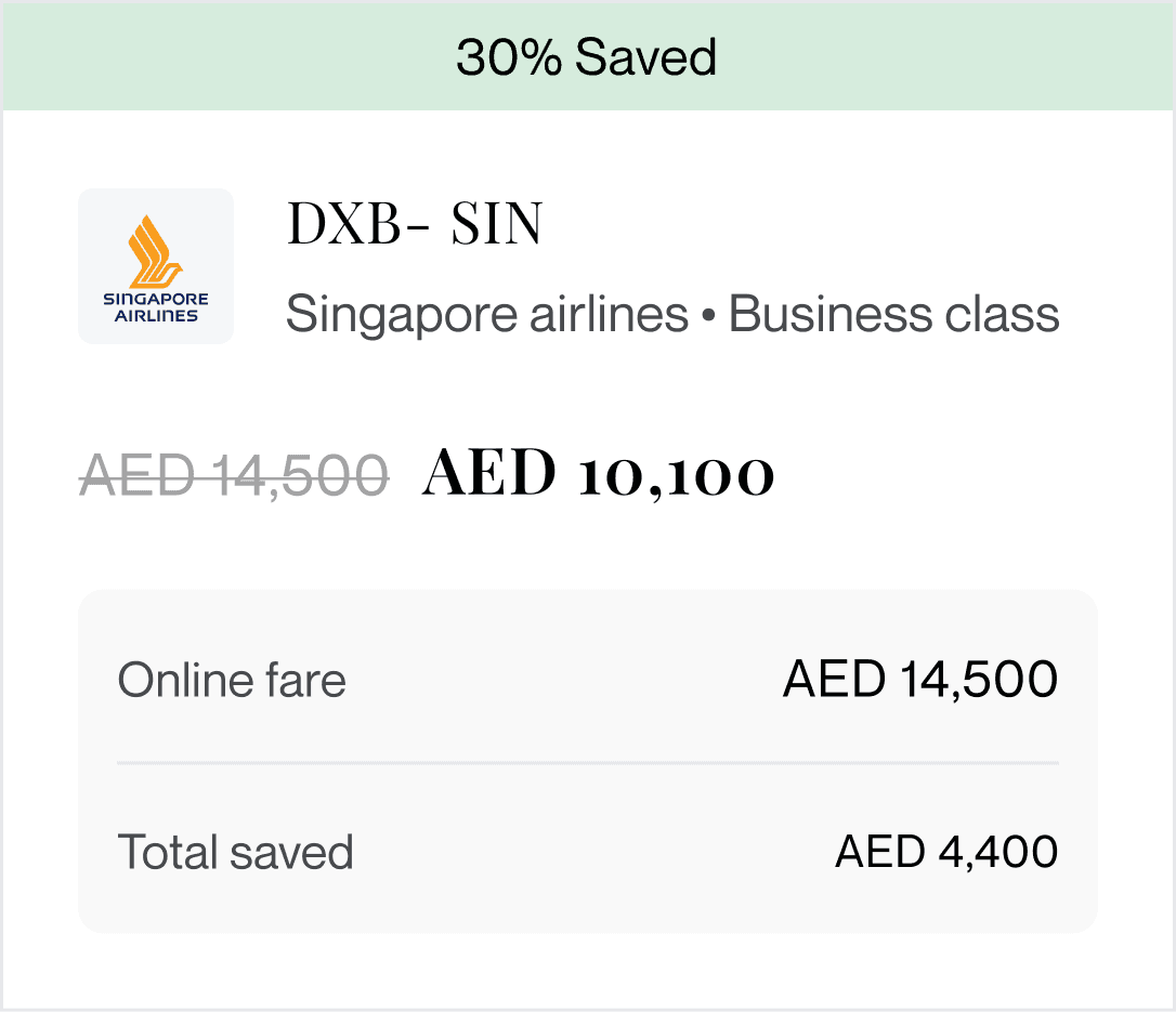 20–50% off business & first class fares