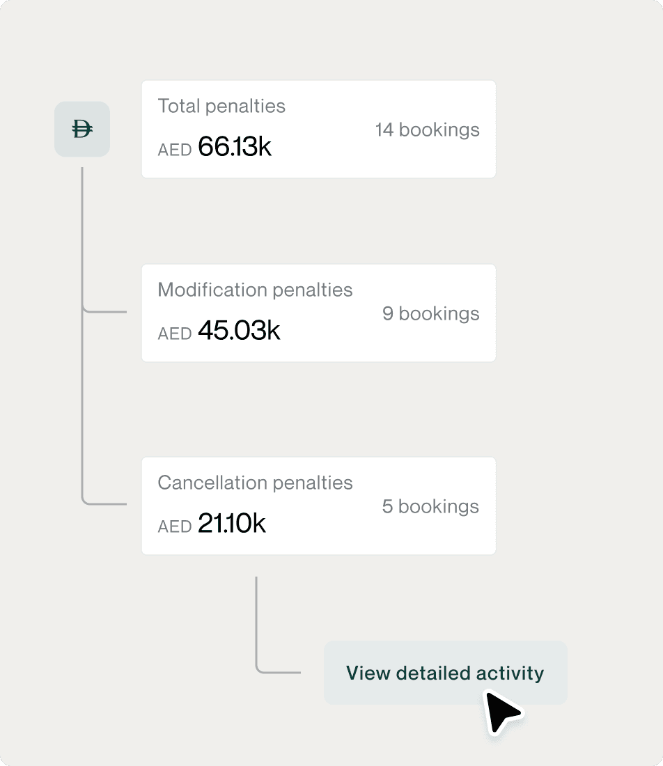 Travel leakage is money lost to friction, not fraud: unused tickets from cancellations that didn't get refunded, change fees from poor planning, premium fares from last-minute bookings, out-of-policy spend that slipped through manual approvals, and vendor overcharges that went unnoticed. Most mid-size companies leak 10-18% of their travel budget this way—often AED 50,000-150,000 annually for a 200-person company. Kitt identifies leakage sources in real-time and shows you exactly where to tighten processes.